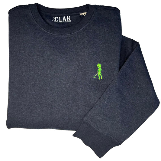Sweat homme "Ketje"™ bleu chiné - broderie vert flash